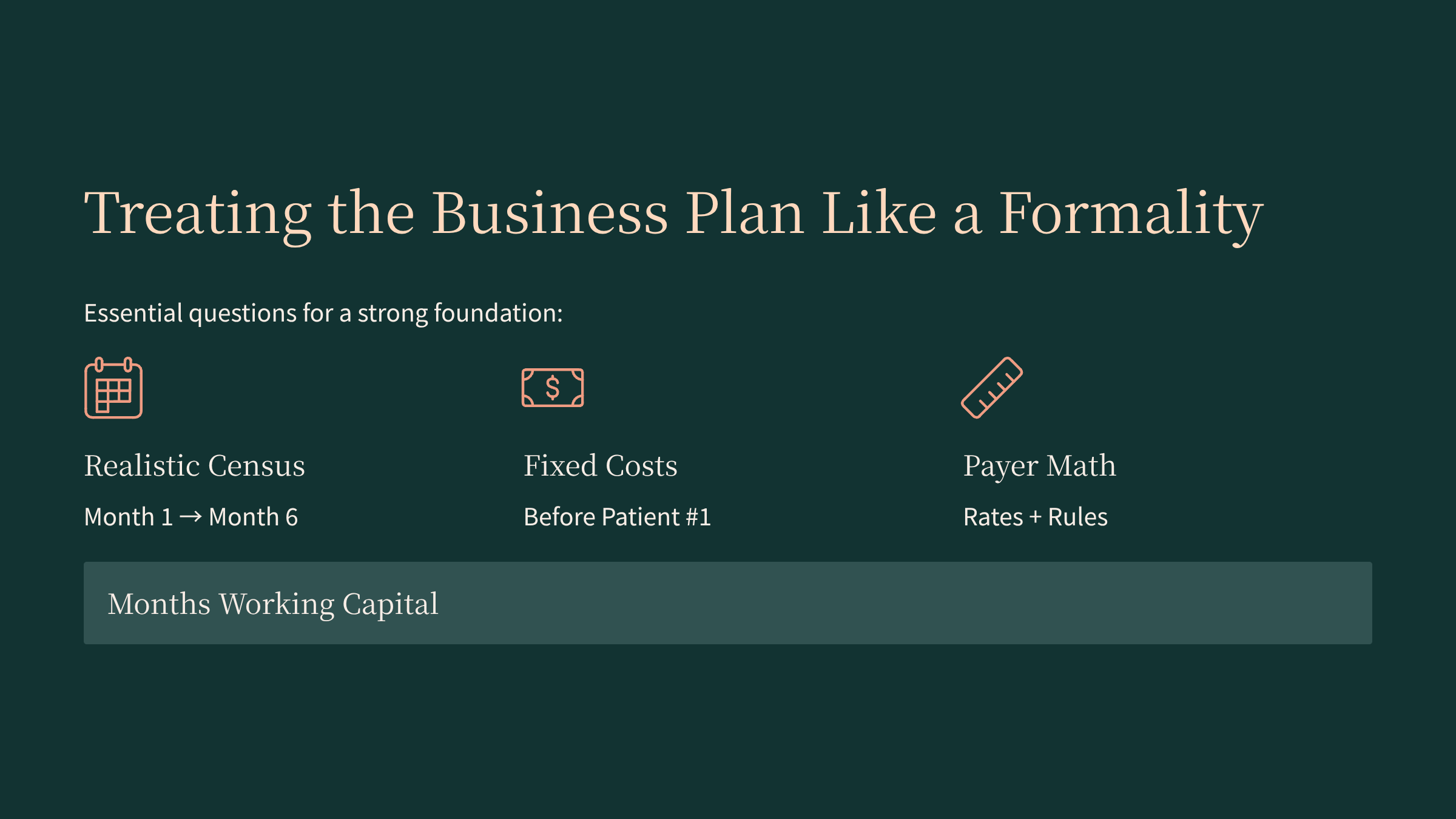 When clinicians build an IOP/PHP business plan, it usually goes one of two ways: either they skip it entirely ("I'll figure it out as I go") or they write a beautiful 30-page document that nobody — including them — ever looks at again.