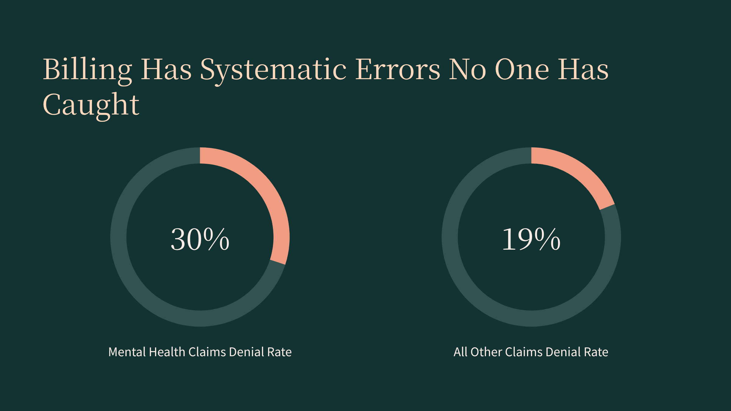 Behavioral health billing has a higher-than-average error and denial rate compared with many other medical specialties, in part because coverage rules, prior authorization requirements, and coding conventions vary so much between payers. National analyses of commercial claims have shown that behavioral health services experience significantly higher denial rates than other services in some years — one recent review found mental health claim denial rates around 30% compared to 19% for all other claims in 2023 for certain plans.[blog.coresolutionsinc]