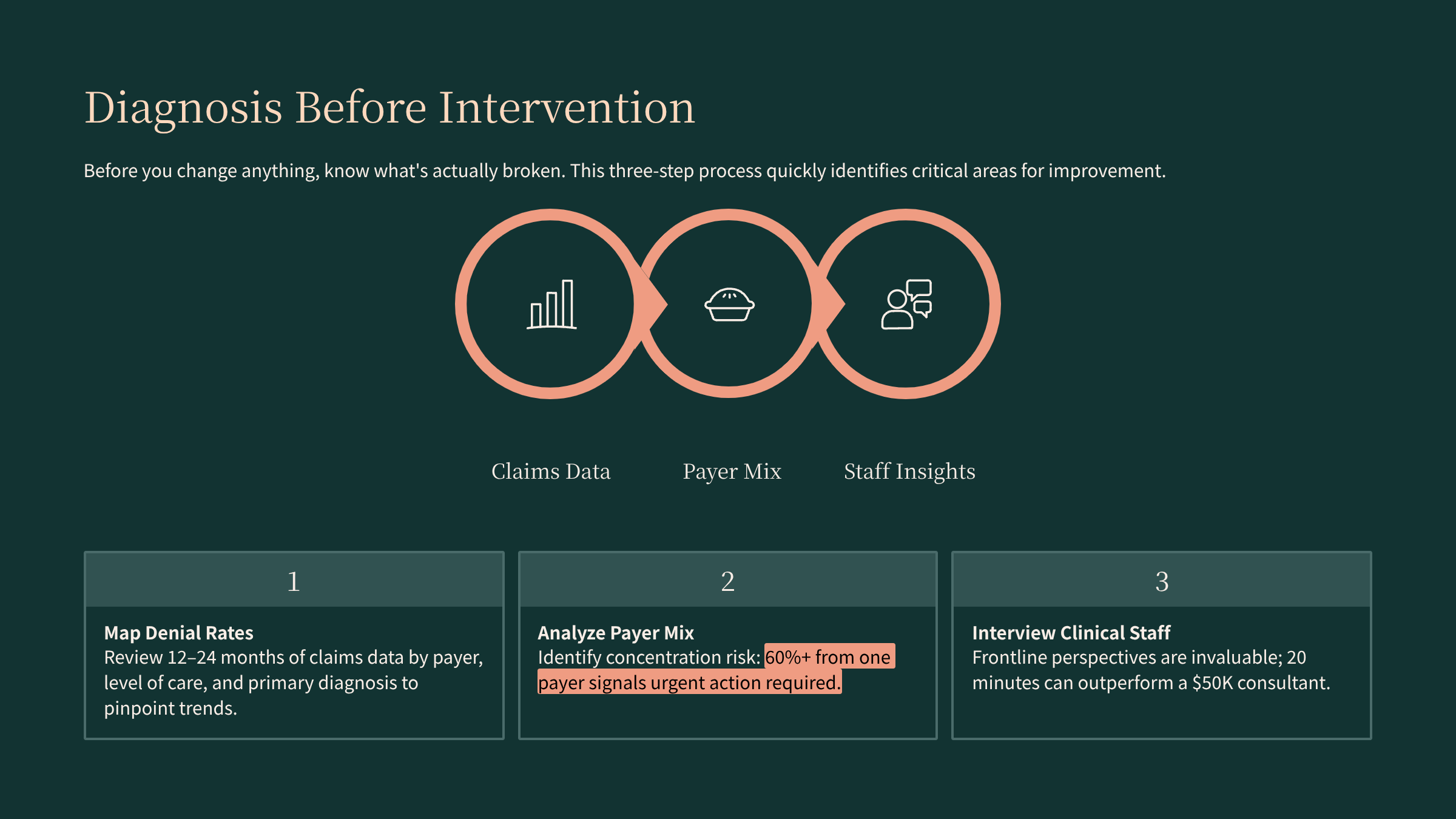 The operators who build durable value communicate the business rationale for operational changes in clinical terms. Improved billing practices mean fewer patients face abrupt coverage terminations. Better UR documentation means patients get the level of care they actually need.