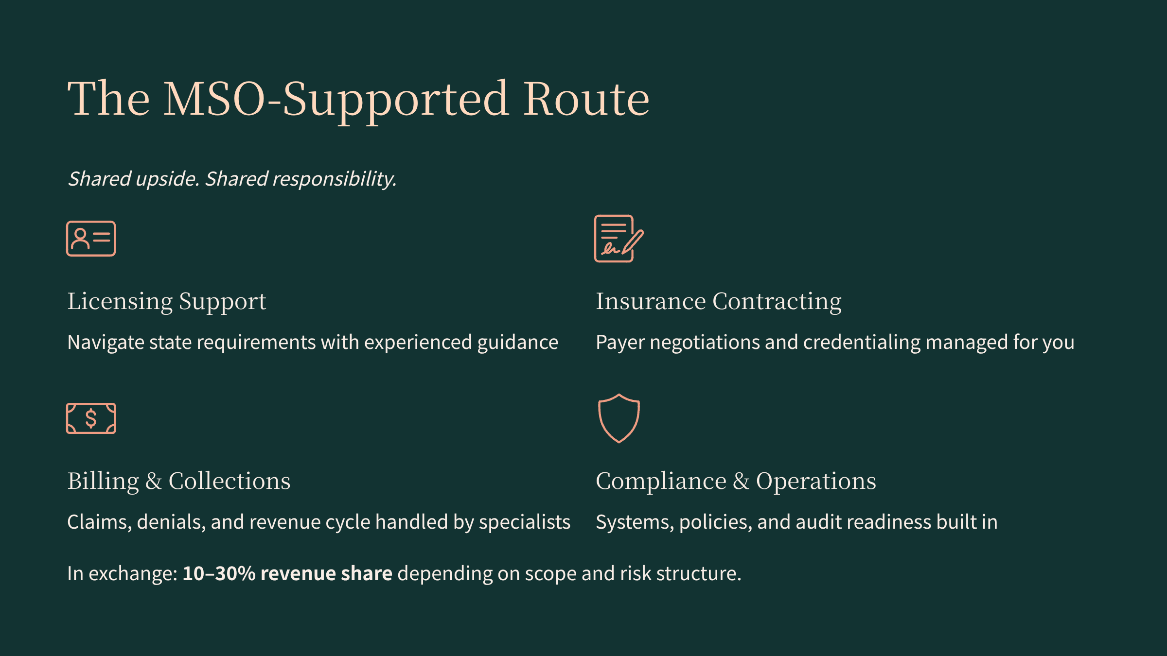If your goal is to build a high-quality program without becoming a full-time operator, the MSO route can be a practical way to get there.