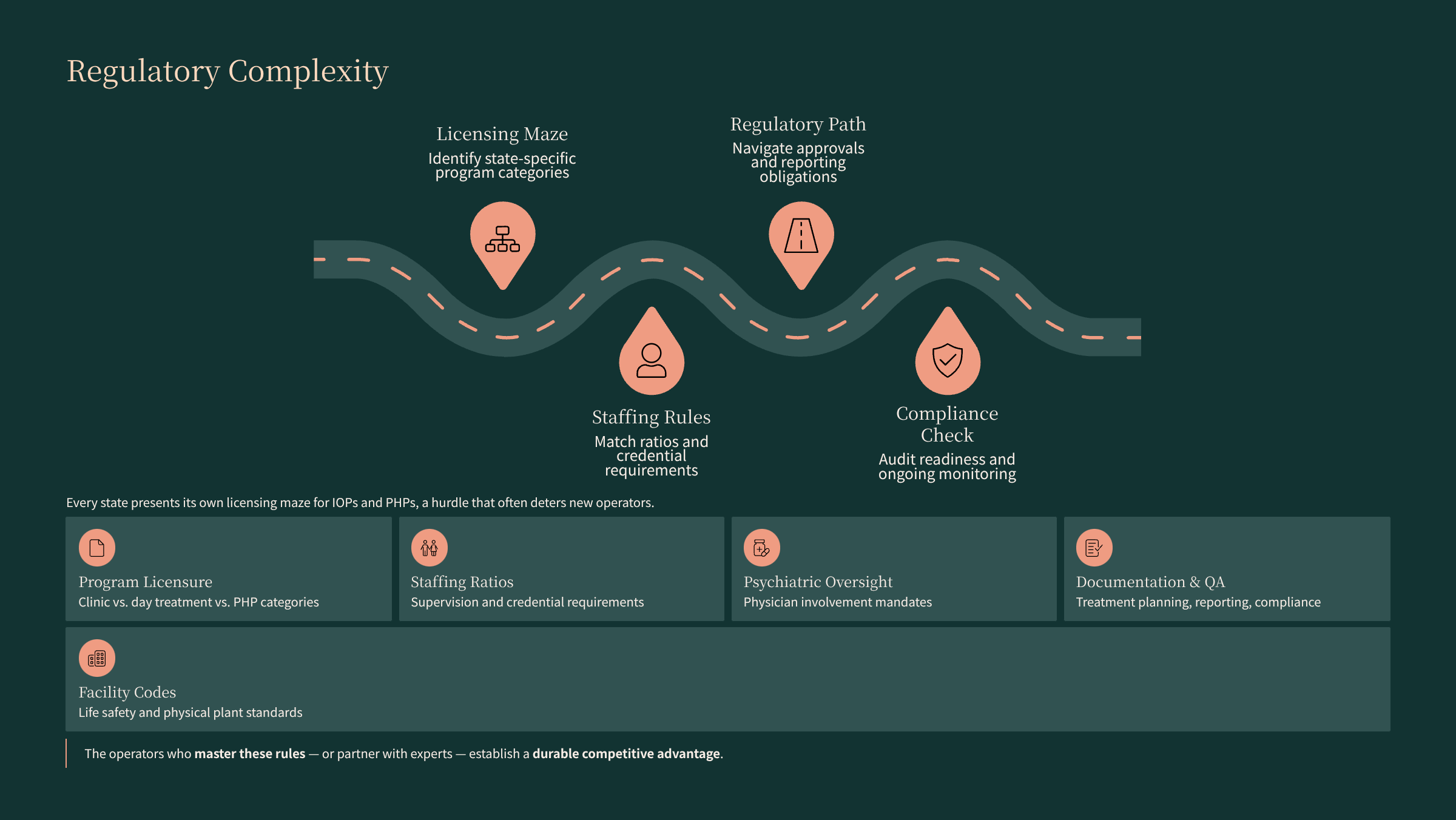 often end up being some of the most attractive for operators who get in early. The same regulatory complexity that scares people off creates competitive insulation once you’ve done the hard work of getting licensed, accredited, and contracted.