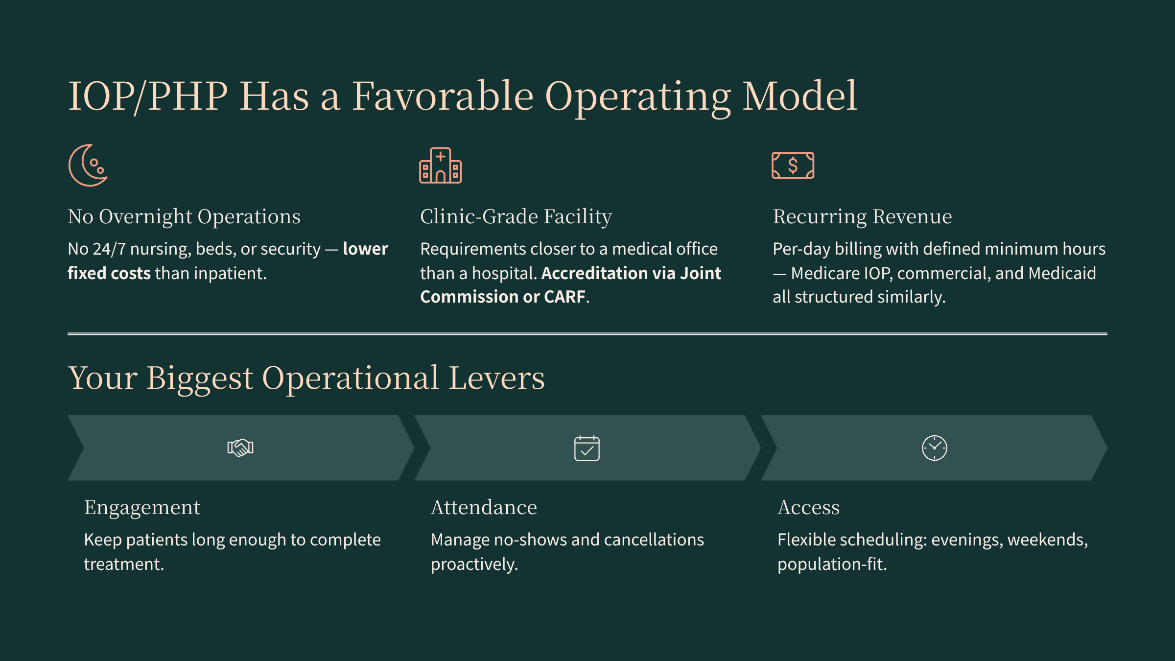 From a pure operating model standpoint, IOP and PHP sit in a sweet spot between traditional outpatient and inpatient:
