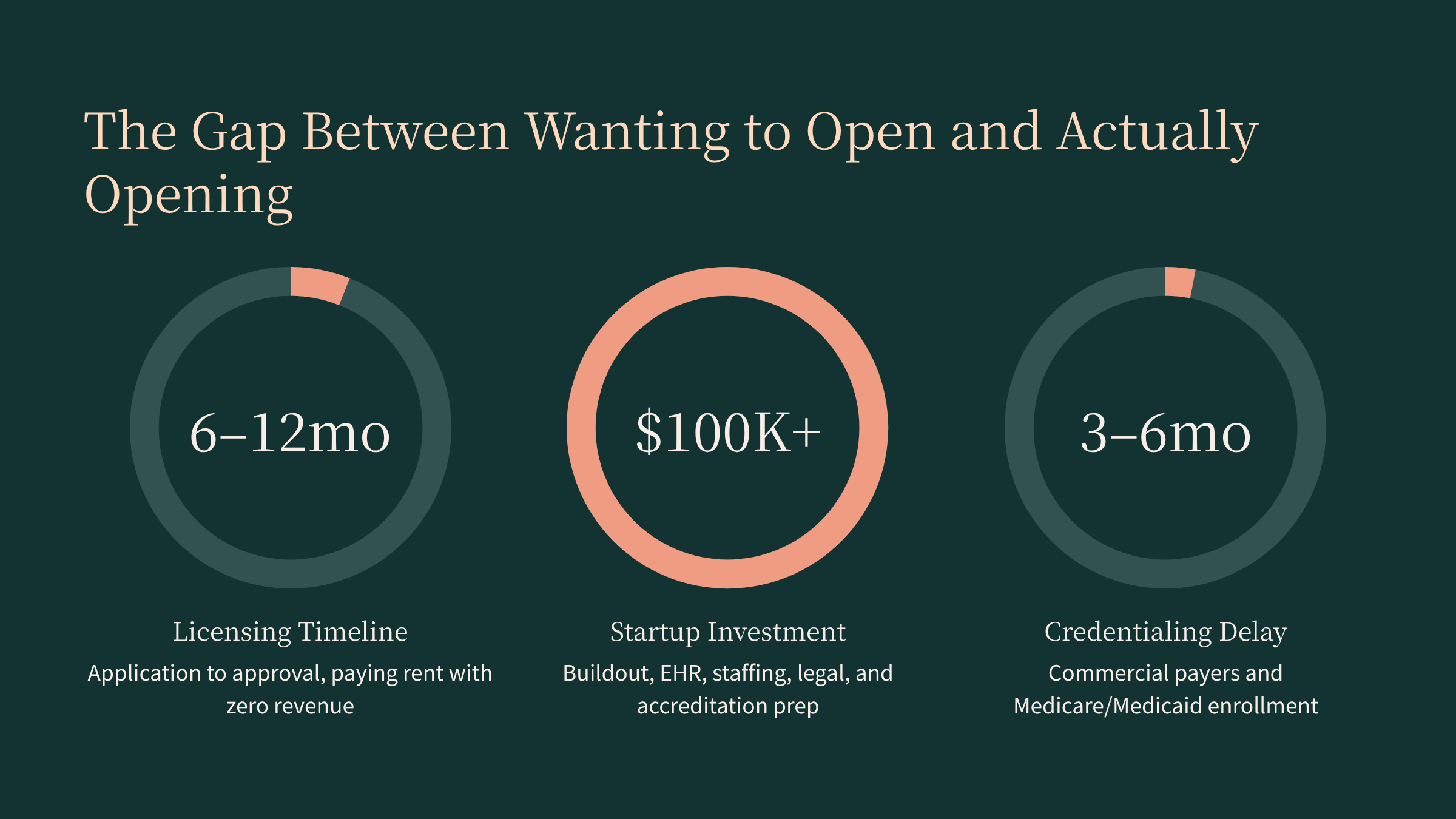 Realistically, many programs take 9–18 months from initial decision to first patient, once you account for site selection, buildout, licensure, payer enrollment, and staffing. The licensing and credentialing steps alone can consume many months, so it’s wise to budget conservatively on both timeline and capital.novitas-solutions+1